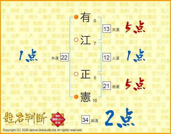 有江正憲さんの天運は13画の5点!