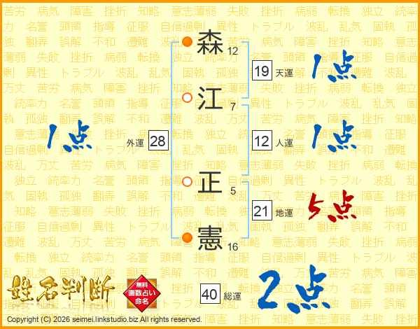 森(12画)江(7画) 正(5画)憲(16画)