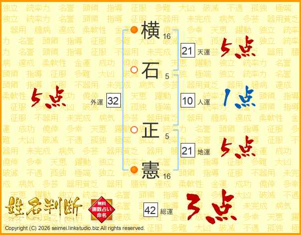 横(16画)石(5画) 正(5画)憲(16画)