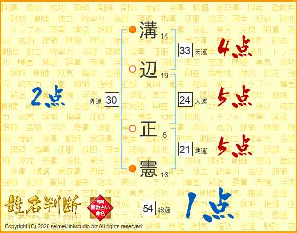 溝辺正憲さんの総運は54画の1点!