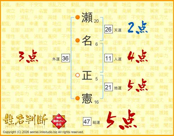 瀬名正憲さんの総運は47画の5点!
