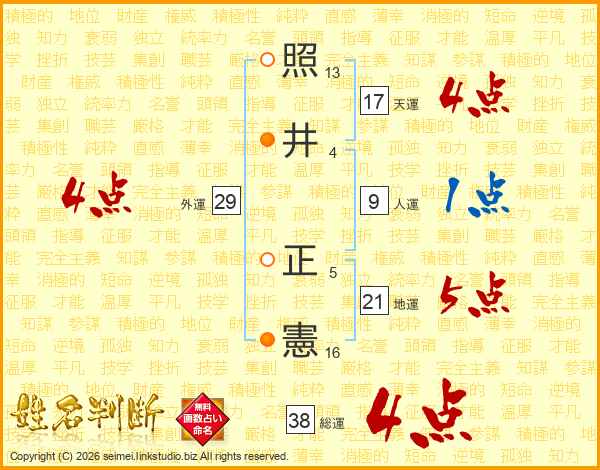 照(13画)井(4画) 正(5画)憲(16画)