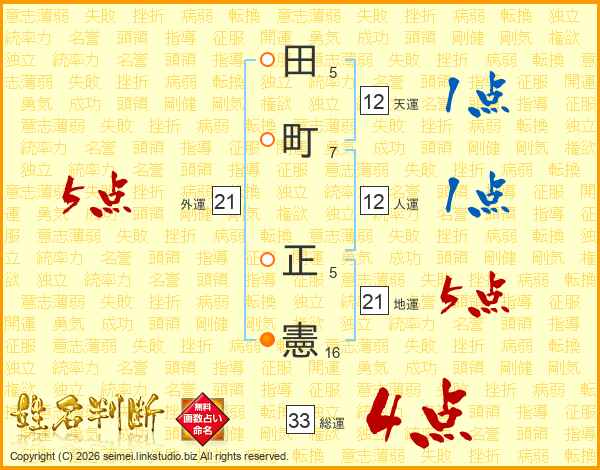 田(5画)町(7画) 正(5画)憲(16画)