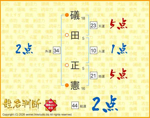 礒田正憲さんの総運は44画の2点!