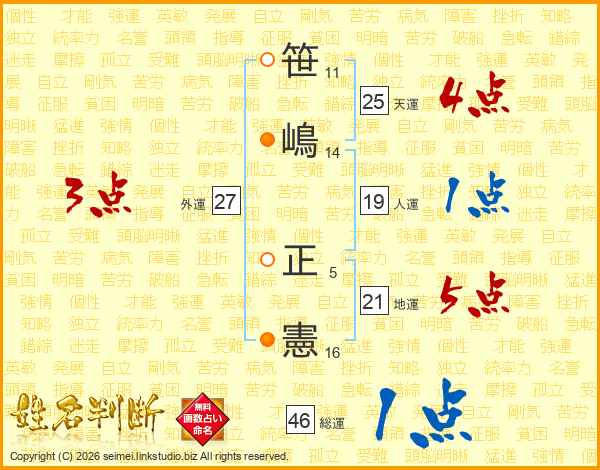 笹嶋正憲さんの総運は46画の1点!