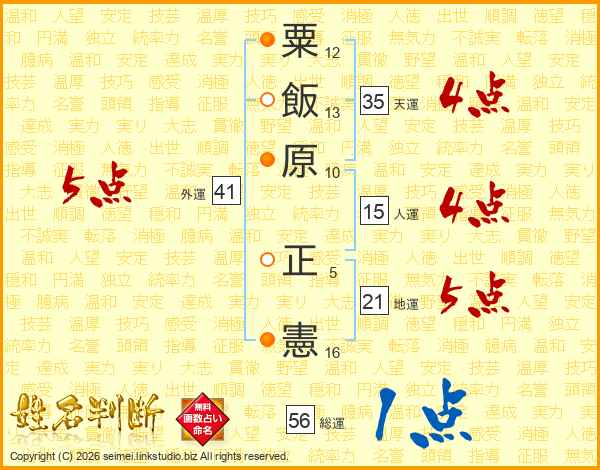 粟飯原正憲さんの総運は56画の1点!