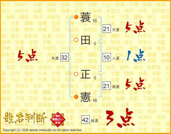 蓑田正憲さんの天運は21画の5点!