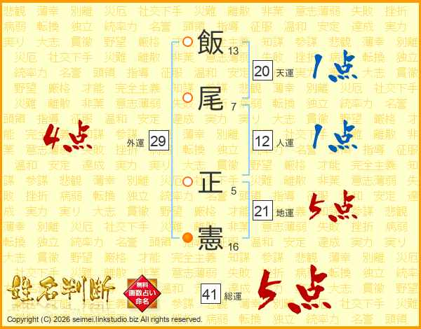 飯尾正憲さんの総運は41画の5点!
