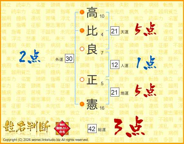 高(10画)比(4画)良(7画) 正(5画)憲(16画)