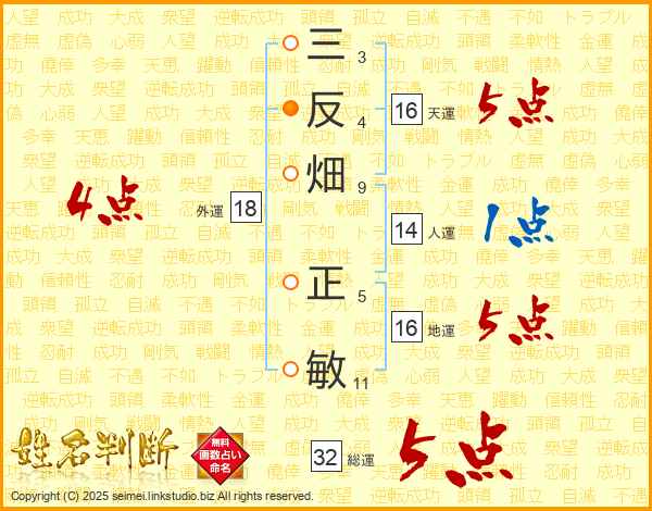 三反畑正敏さんの総運は32画の5点!