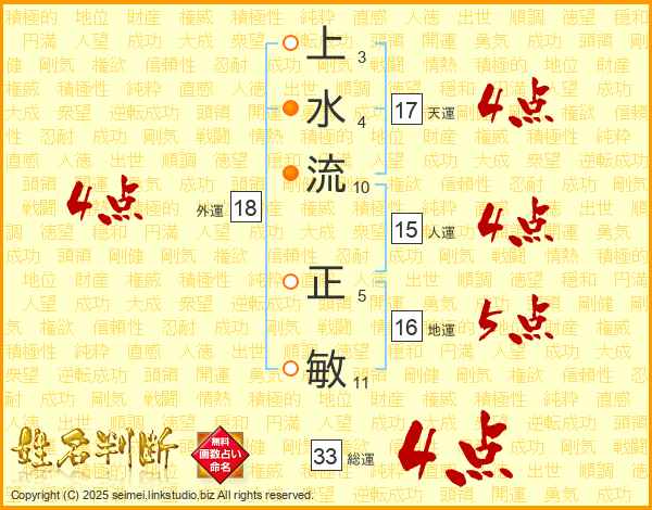 上水流正敏さんの総運は33画の4点!