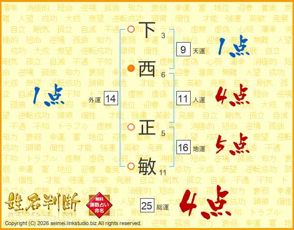 下西正敏さんの人運は11画の4点!