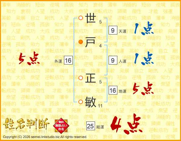 世戸正敏さんの総運は25画の4点!