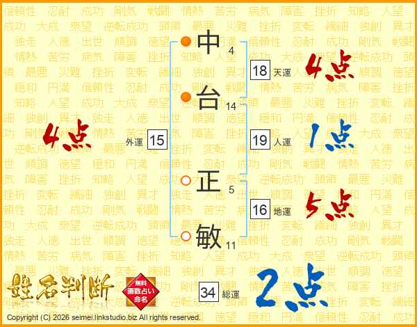 中台正敏さんの総運は34画の2点!