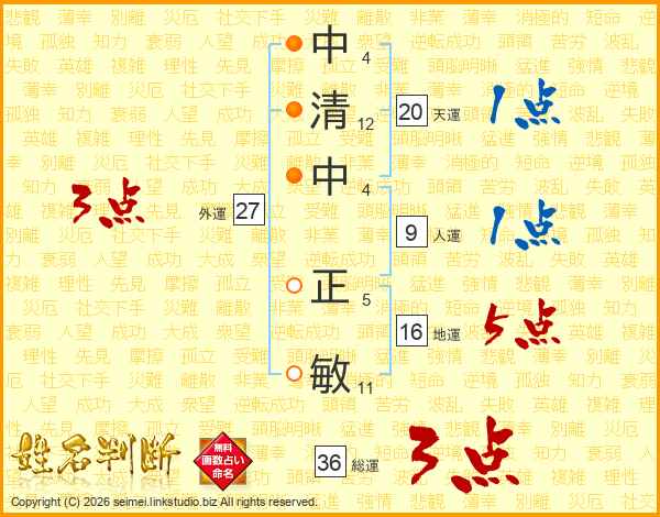 中清中正敏さんの総運は36画の3点!