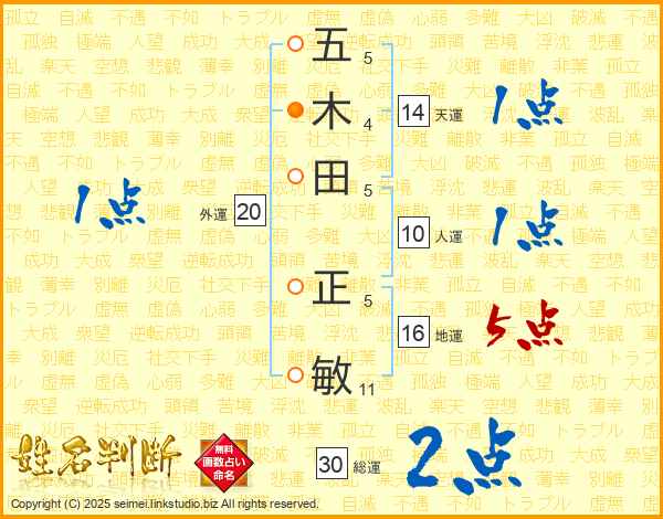 五木田正敏さんの天運は14画の1点!