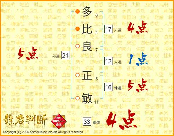 多比良正敏さんの天運は17画の4点!