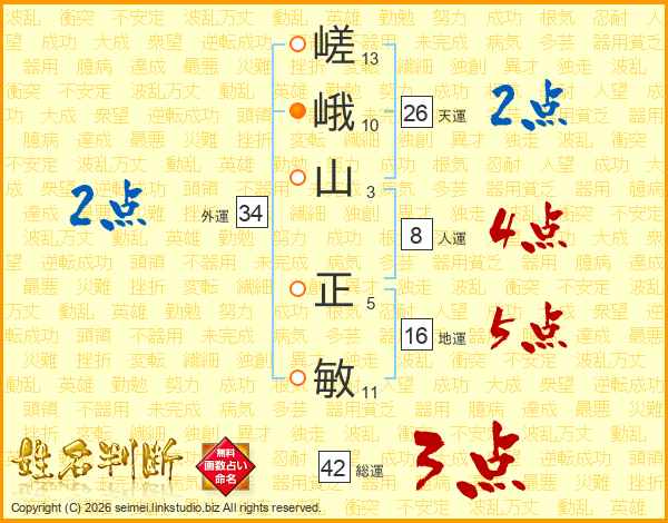 嵯峨山正敏さんの天運は26画の2点!