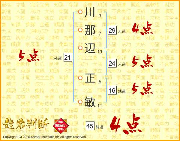 川那辺正敏さんの天運は29画の4点!