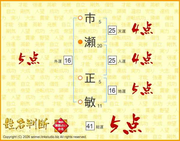 市(5画)瀬(20画) 正(5画)敏(11画)