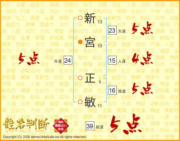 新宮正敏さんの総運は39画の5点!