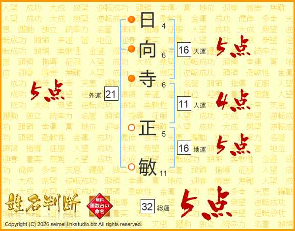 日(4画)向(6画)寺(6画) 正(5画)敏(11画)