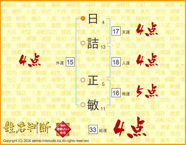 日詰正敏さんの総運は33画の4点!