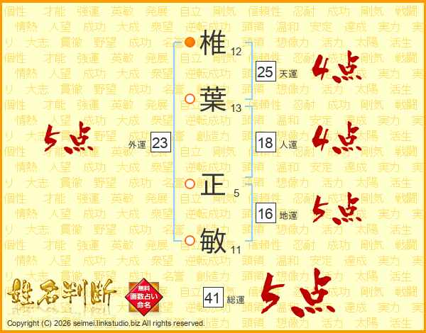 椎葉正敏さんの総運は41画の5点!