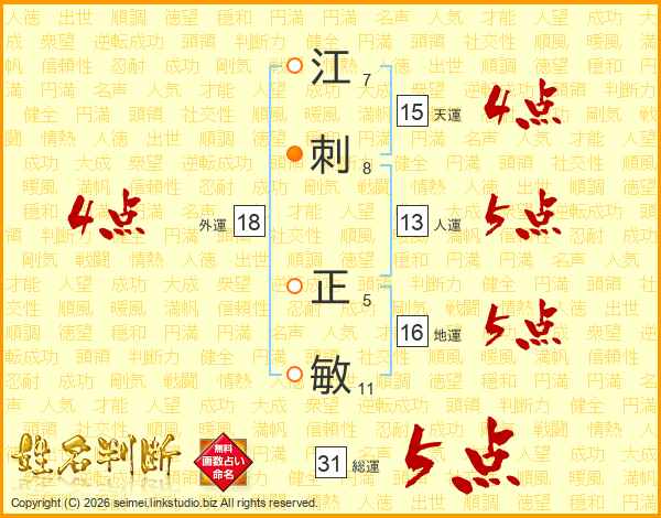 江刺正敏さんの総運は31画の5点!
