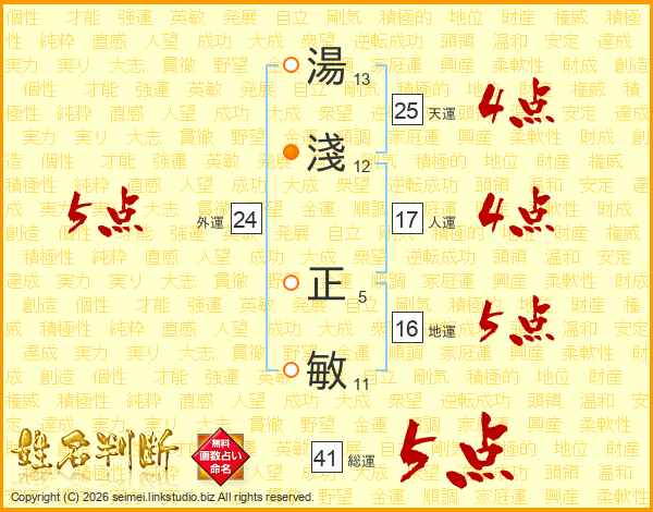湯(13画)淺(12画) 正(5画)敏(11画)