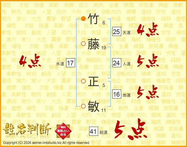 竹(6画)藤(19画) 正(5画)敏(11画)