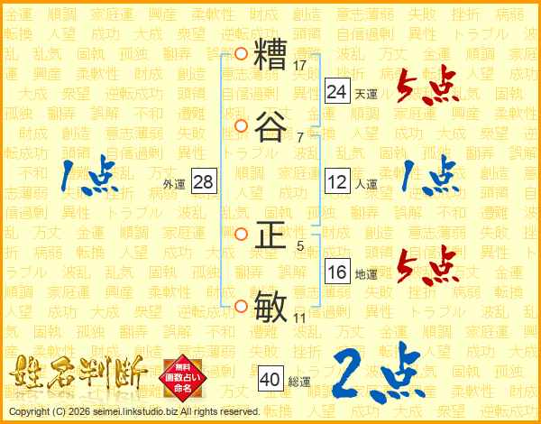 糟谷正敏さんの天運は24画の5点!