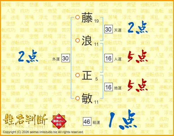 藤浪正敏さんの総運は46画の1点!