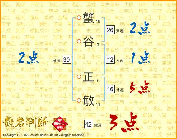 蟹谷正敏さんの天運は26画の2点!
