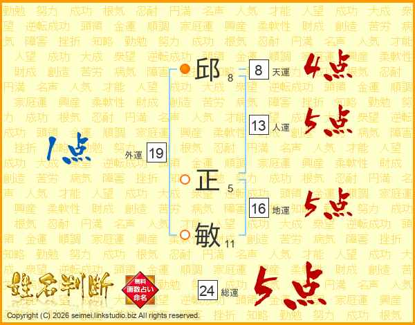 邱正敏さんの総運は24画の5点!