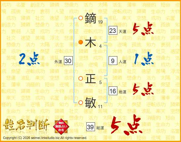 鏑木正敏さんの総運は39画の5点!