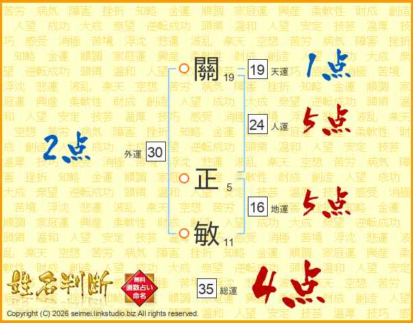 關正敏さんの総運は35画の4点!