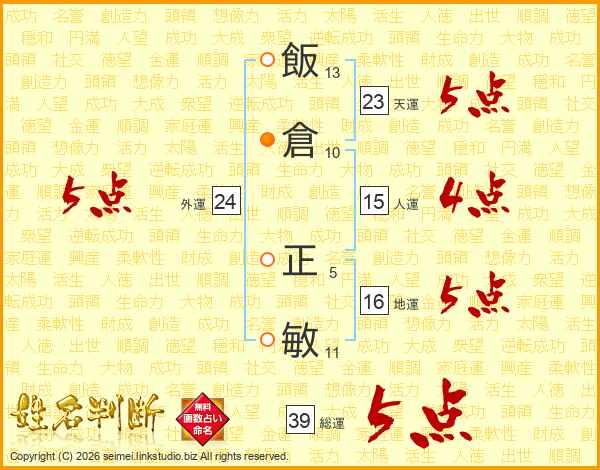 飯倉正敏さんの総運は39画の5点!