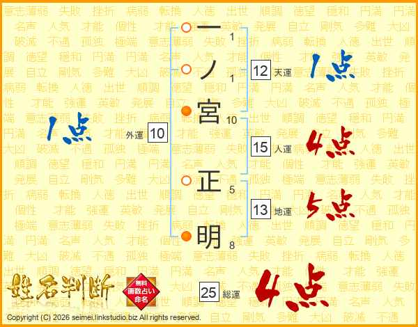 一ノ宮正明さんの総運は25画の4点!