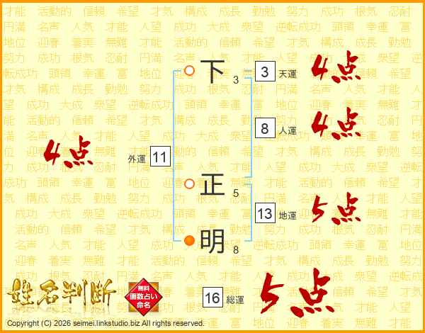 下正明さんの総運は16画の5点!