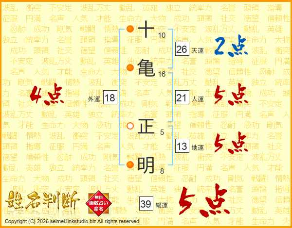 十亀正明さんの総運は39画の5点!