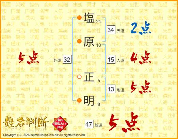 塩原正明さんの総運は47画の5点!