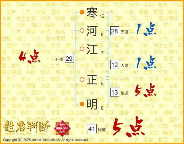 寒(12画)河(9画)江(7画) 正(5画)明(8画)