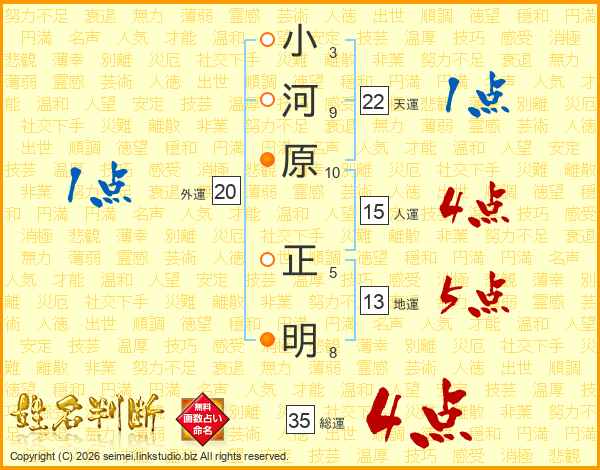 小(3画)河(9画)原(10画) 正(5画)明(8画)