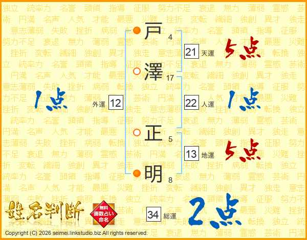 戸澤正明さんの天運は21画の5点!