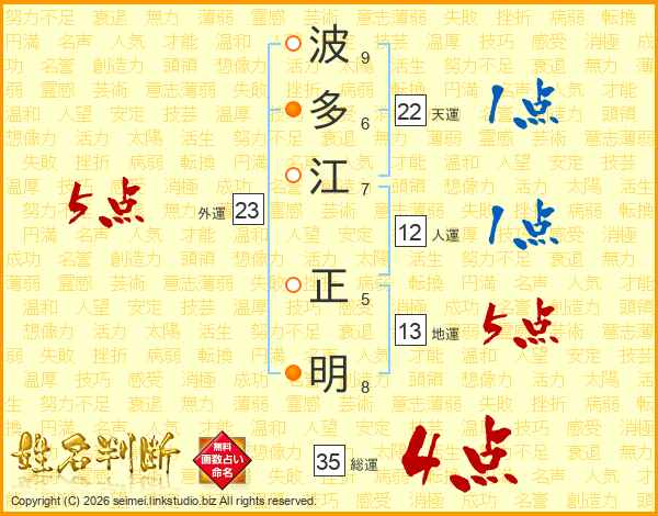 波多江正明さんの天運は22画の1点!