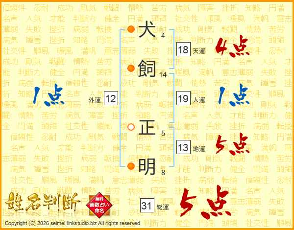 犬飼正明さんの総運は31画の5点!