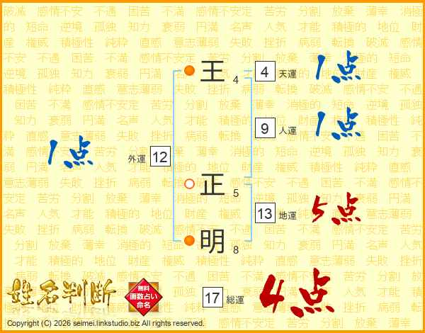 王正明さんの総運は17画の4点!
