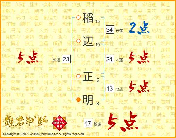 稲辺正明さんの総運は47画の5点!