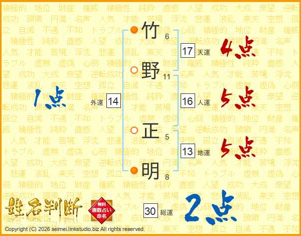 竹野正明さんの総運は30画の2点!